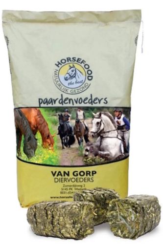 Voeradvies: te voederen naast hooi en stro +/- 1-2 cubes per 100 kg lichaamsgewicht per dag.